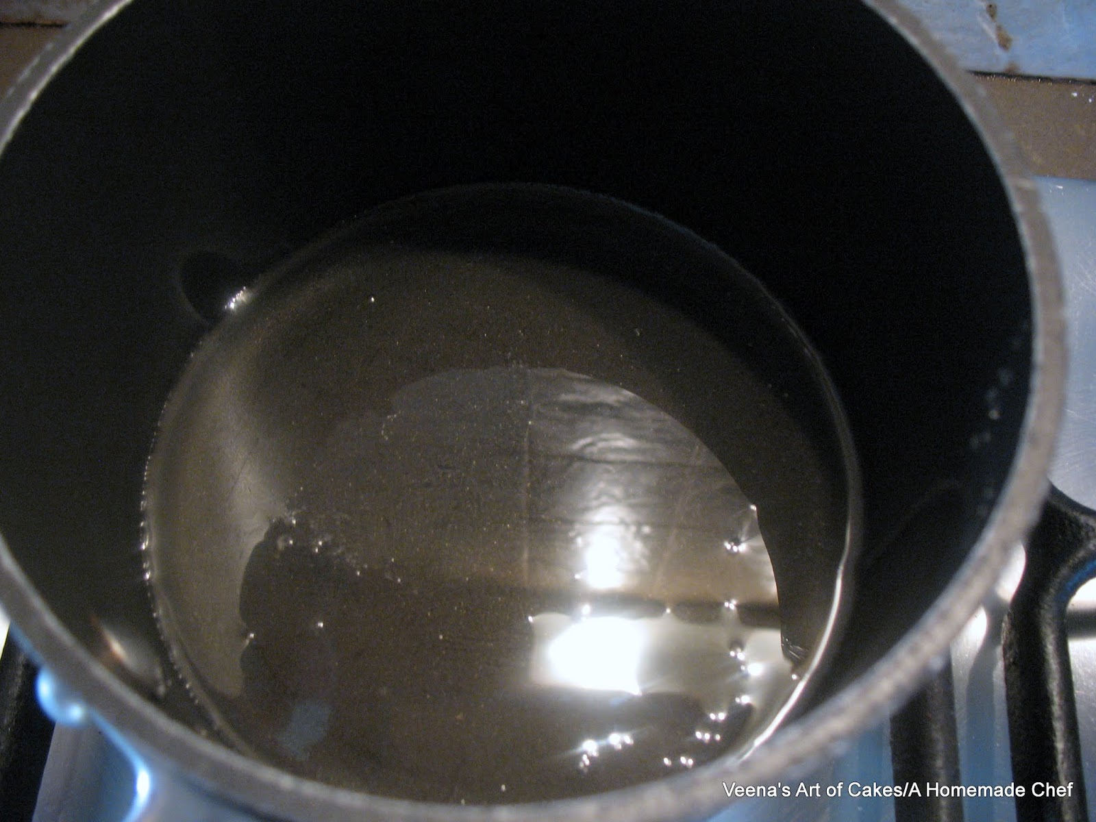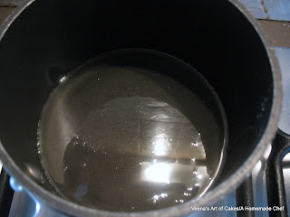 Place the corn syrup in a pan on low heat. Once the corn syrup is hot add in the gelatin mixture.